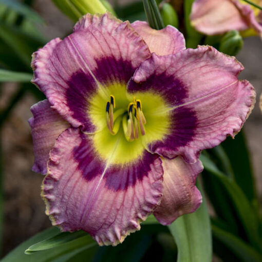One look at the soothing colors of ‘Always Afternoon’ and you can’t help but feel a bit more calm. The medium mauve blooms with a purple eyezone around a yellow throat are delicious to see, but the ruffled edges and excellent blue green foliage make this beauty one to remember! A popular and award-winning variety. Winner of both the 1993 Don C Stevens award for outstanding eyed or banded daylily and the 1997 Stout Medal – daylily’s highest award.