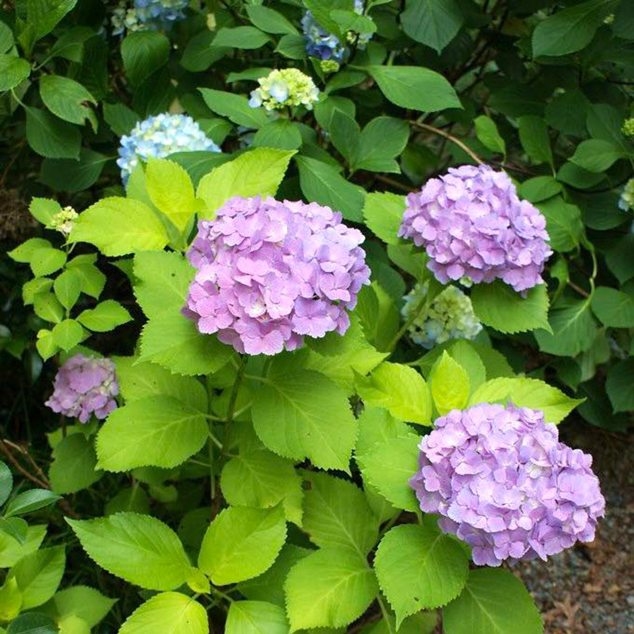 Best grown in rich, medium moisture, well-drained soils in part shade. Tolerates full sun only if grown in consistently moist soils. Soil pH affects the flower color (blue in highly acidic soils and lilac to pink in slightly acidic to alkaline soils). Add aluminum sulfate to the soil to make the flowers bluer or add lime to the soil to make the flowers pinker. Begin soil treatments well in advance of flowering, as in late autumn or early spring. Plants generally need little pruning. If needed, prune immediately after flowering by cutting back flowering stems to a pair of healthy buds. Prune out weak or winter-damaged stems in late winter/early spring. Unlike many other H. macrophylla cultivars, ‘Penny Mac’ (1) blooms on both old and new growth and (2) is winter hardy to USDA Zone 5. (Courtesy of Missouri Botanical Garden Plant Finder)