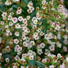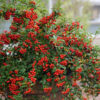 Pyracomeles Berry Box™ is an evergreen shrub offering year-round interest. Showy from spring through fall, this charming little pyracantha-esque shrub is covered in white button-like blooms spring through fall, followed by abundant pea-sized berries that turn from orange to red.