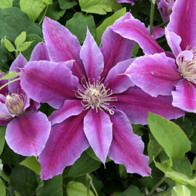 ‘Moonlight’ is valued for its silvery, blue-green, heart-shaped leaves (3-5″ across) and large, flat-topped, lace cap hydrangea-like clusters (8-10″ across) of creamy white flowers which bloom for 6 to 8 weeks in summer.